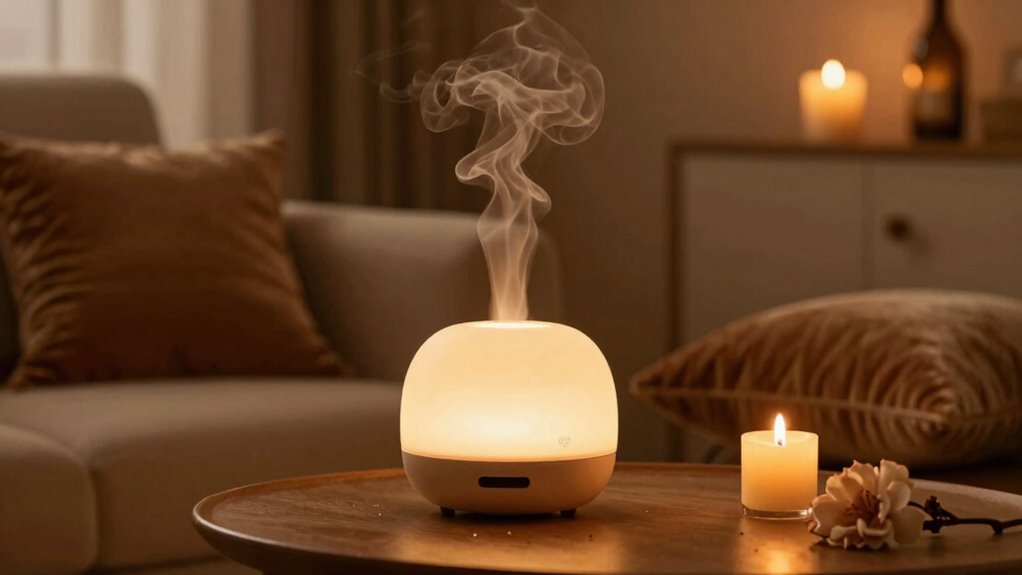 You should choose your fragrance based on room size and scent intensity. In smaller rooms, opt for lighter, subtler scents to avoid overwhelming the space or your partner. For larger rooms, you can select more intense or richer fragrances to fill the space without losing their impact. Adjust the scent intensity accordingly, ensuring the aroma creates a cozy, romantic atmosphere without becoming overpowering or intrusive.