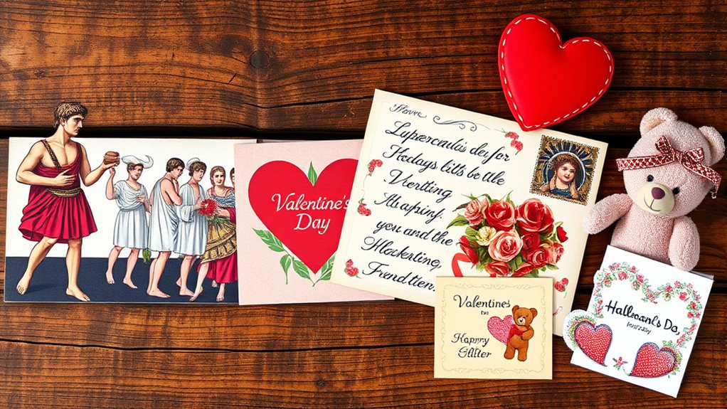 Sie werden vielleicht bemerken, dass bestimmte Symbole, wie Herzen und Rosen, manchmal zufällig erscheinen, aber eine tiefere Bedeutung tragen. Im Laufe der Geschichte sind alte Symbole wie Amor’s Pfeil und das Herz beständig geblieben und verbinden Vergangenheit und Gegenwart. Moderne Motive ehren diese Symbole weiterhin und erinnern Sie an die zeitlose Natur der Liebe. Diese dauerhaften Symbole stehen für Zuneigung und Romantik und überbrücken alte Traditionen mit heutigen Feierlichkeiten, sodass Ihre Erfahrung des Feiertags bedeutungsvoll und in der Geschichte verwurzelt ist.