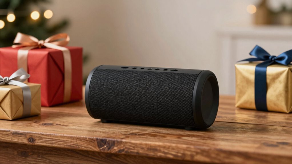 If you’re looking for the perfect Bluetooth speaker gift for your boyfriend in 2026, I’ve got you covered. From waterproof, portable models with dazzling LED lights to stylish speakers that double as phone stands, there’s something for every style and outdoor adventure. Many options also feature long battery life, stable connectivity, and added functions like alarms or wireless charging. Keep going, and you’ll discover top picks that match his lifestyle and taste effortlessly.
